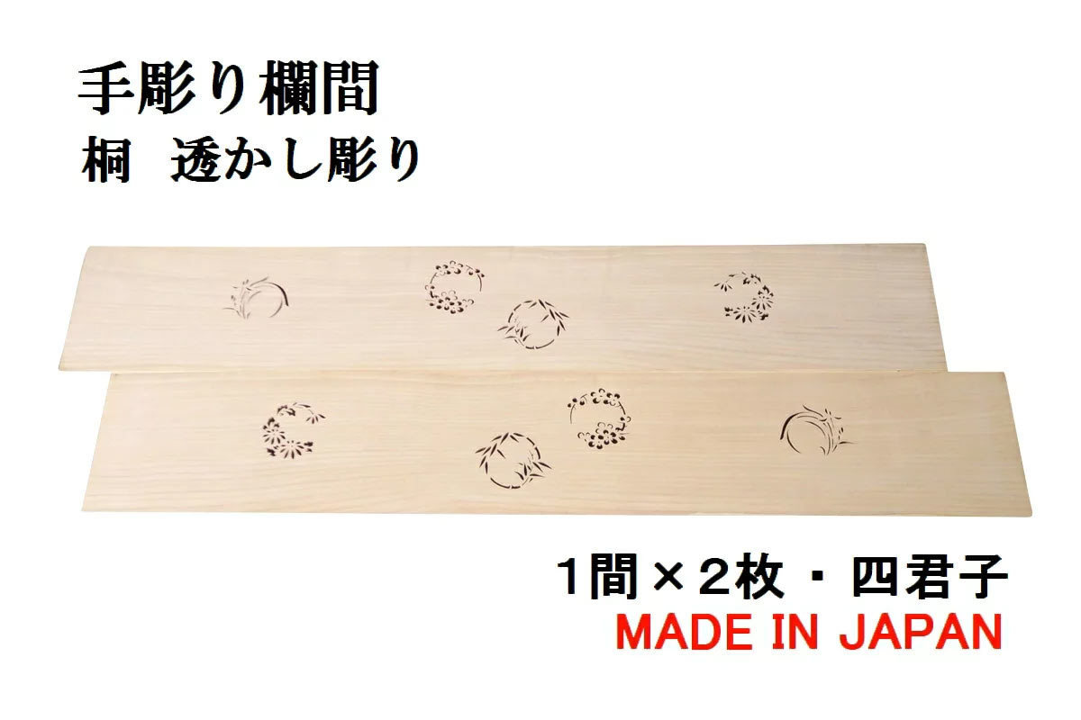 欄間 建具 【1点もの商品】【新品】高級手彫り欄間2間1組(1間×2枚)透かし彫り / 四君子 板/桐の柾目