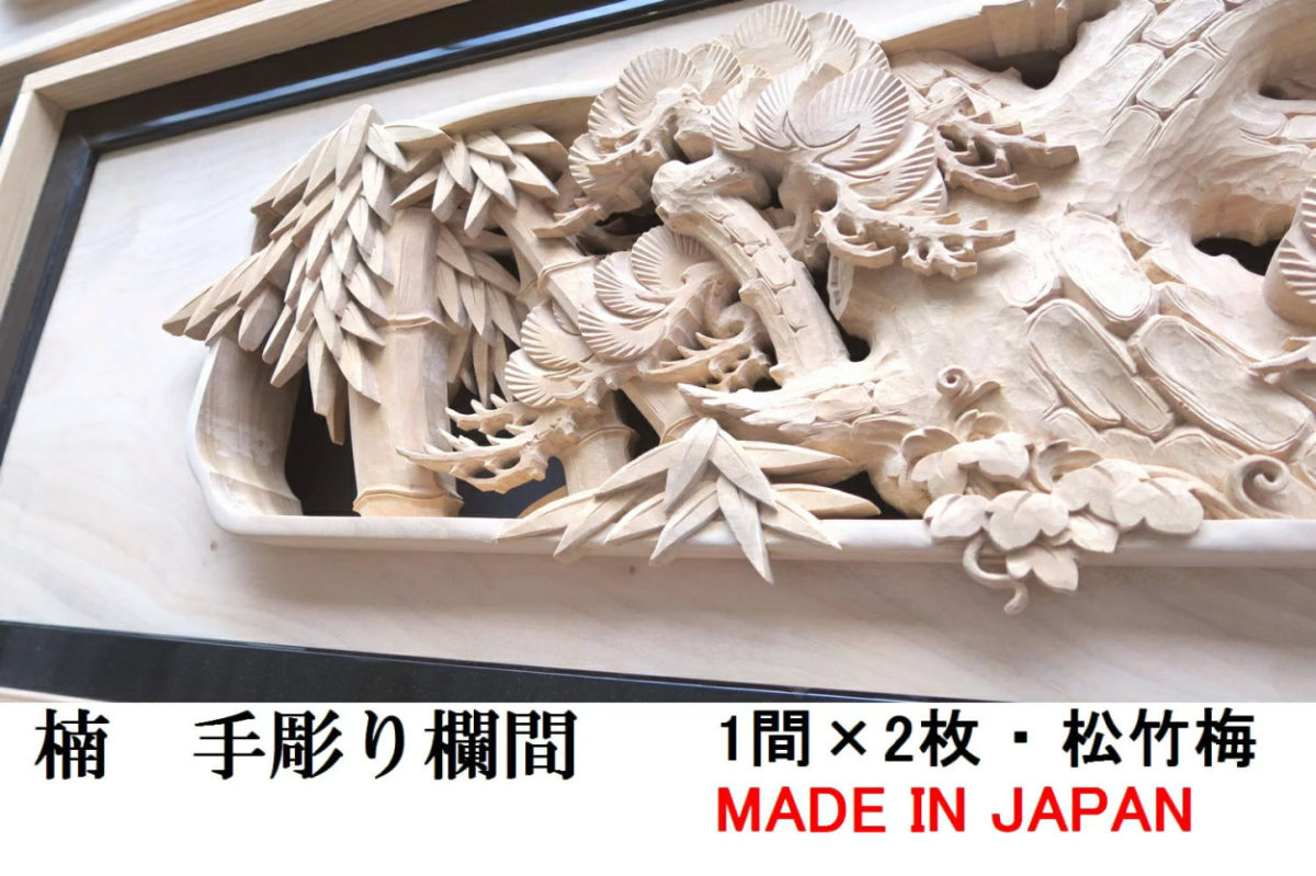 欄間 建具 欄間彫刻 【1点もの商品】【新品】 高級手彫り欄間2間1組(1間×2枚) 彫刻 / 松竹梅 楠 国産材 国内加工 らんま