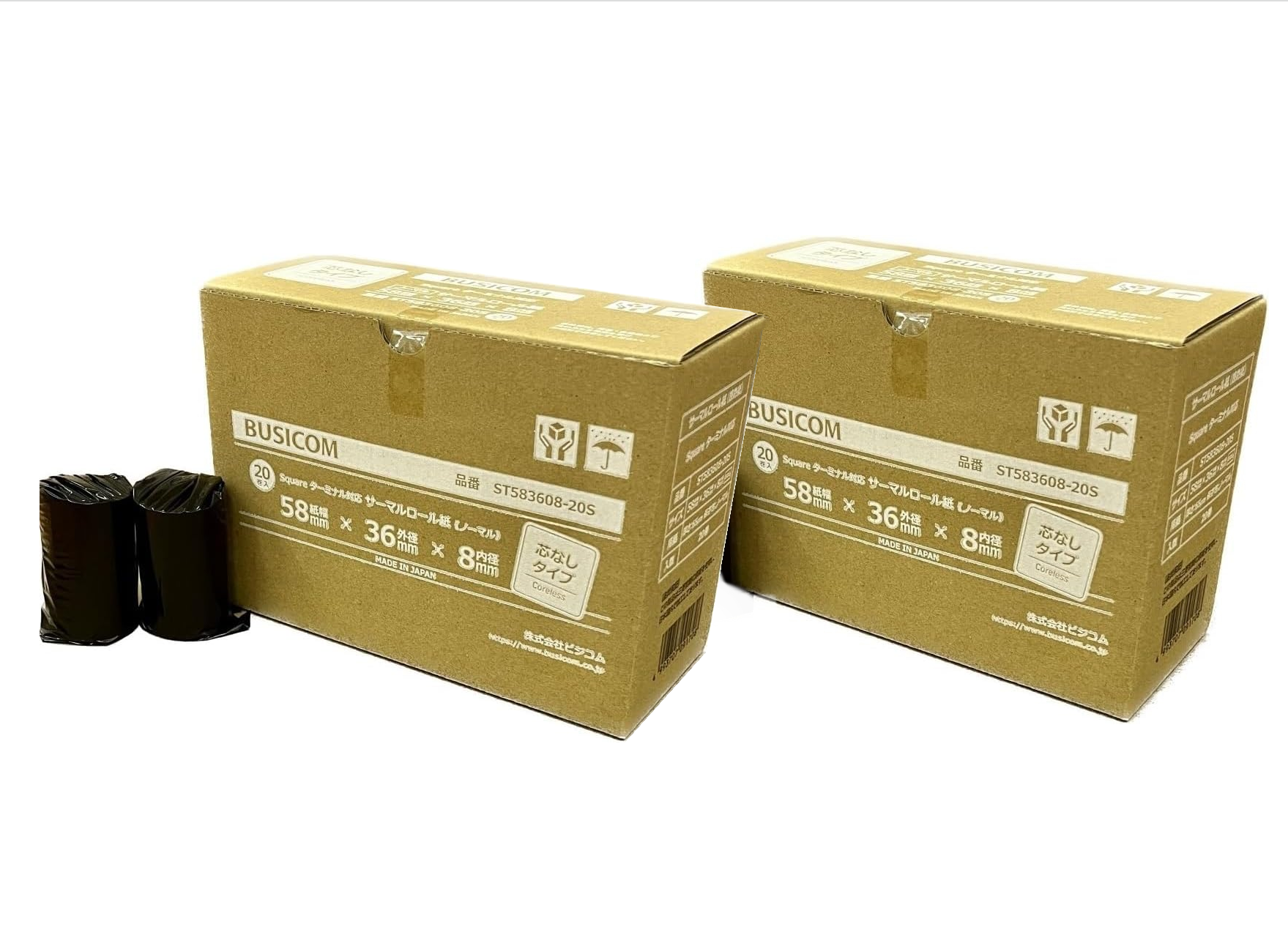 BUSICOM 純正品 感熱レジロール紙 58mm幅 58mmX36mmX8mm 芯なし 40巻入 (20巻x2) サーマルロール 決済端末用 ST583608-20S