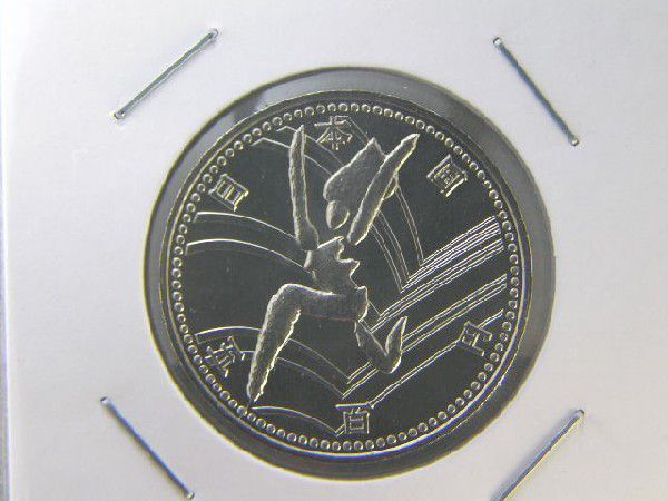 発行日 平成6年9月27日 発行枚数1,000万枚 直径26.5ミリ 量目7.2g 銅75%/ニッケル25% 図案 跳ぶ 他の記念貨幣と比べて発行枚数が少ない為、現行記念貨の中では比較的に入手の難しいコインです。※撮像は見本です。