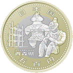 直径26.5ミリ 品位 銅750/亜鉛125/ニッケル125 量目7.1g 異形斜めギザ、潜像 ※2種類の異なる金属を組み合わせる「バイカラー」と異なる種類の金属板で挟みこむ「クラッド」を合わせた「バイカラー・クラッド」技術を用いた500円貨幣です。