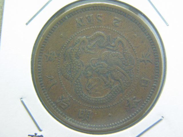 直径31.81ミリ 銅98% 量目14.26g 近代銅貨の中で一番大きいコインです。7枚で100gになります。持ち運びはさぞ大変だったろうと思います。この時代は硬貨に使われている金属の価値が、そのまま、コインの額面でした。そういう事でこんな大きな銅貨になった訳です。