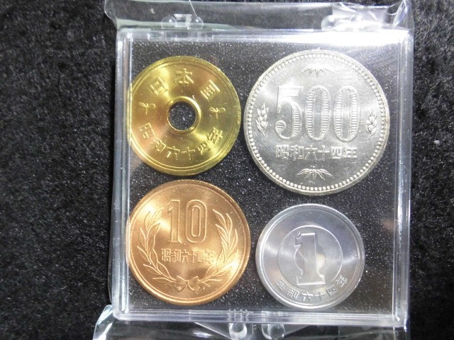 昭和64年銘 500円/10円/5円/1円 ロール出し未使用
