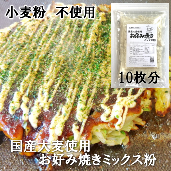 【小麦粉を使用しないお好み焼き】国産大麦使用 お好み焼きミックス粉 送料無料 2枚分70g×5パック入り (計10枚分)【小麦グルテンフリー】