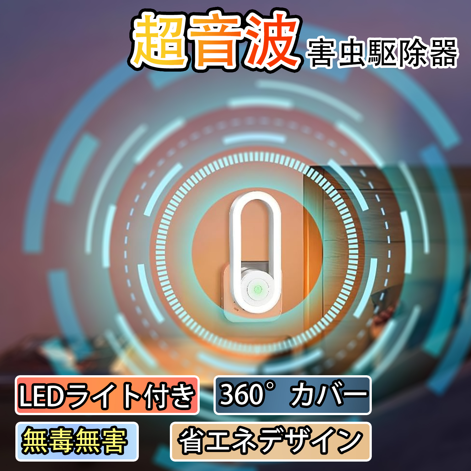 蚊取り 虫よけ 小型 超音波 害虫駆除器 LEDライト 害虫対策 ネズミ 蚊ゴキブリ 駆除 室内 寝室 玄関 コンセント式 pse認証済み