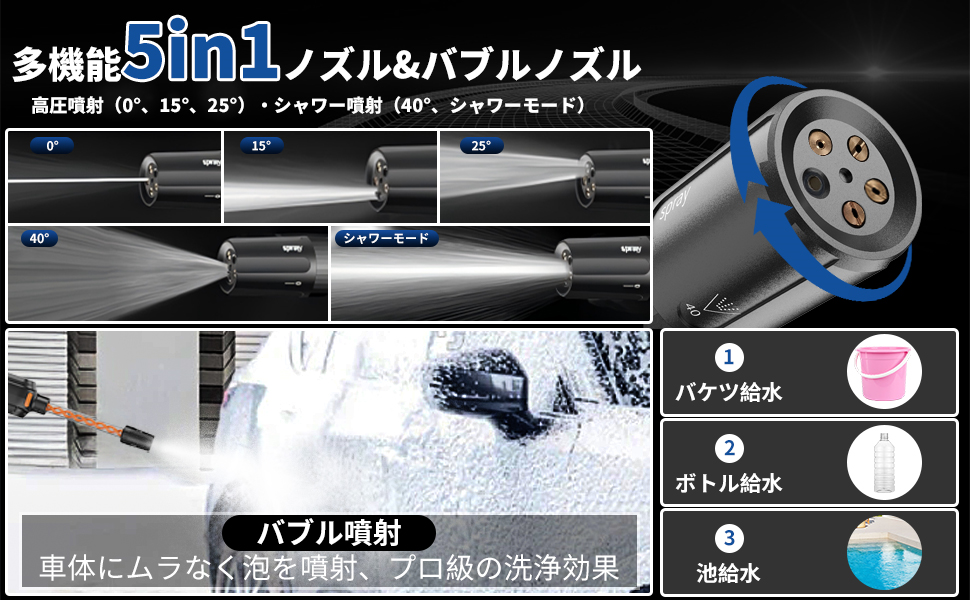 【多機能5合1ノズル&バブルノズル】