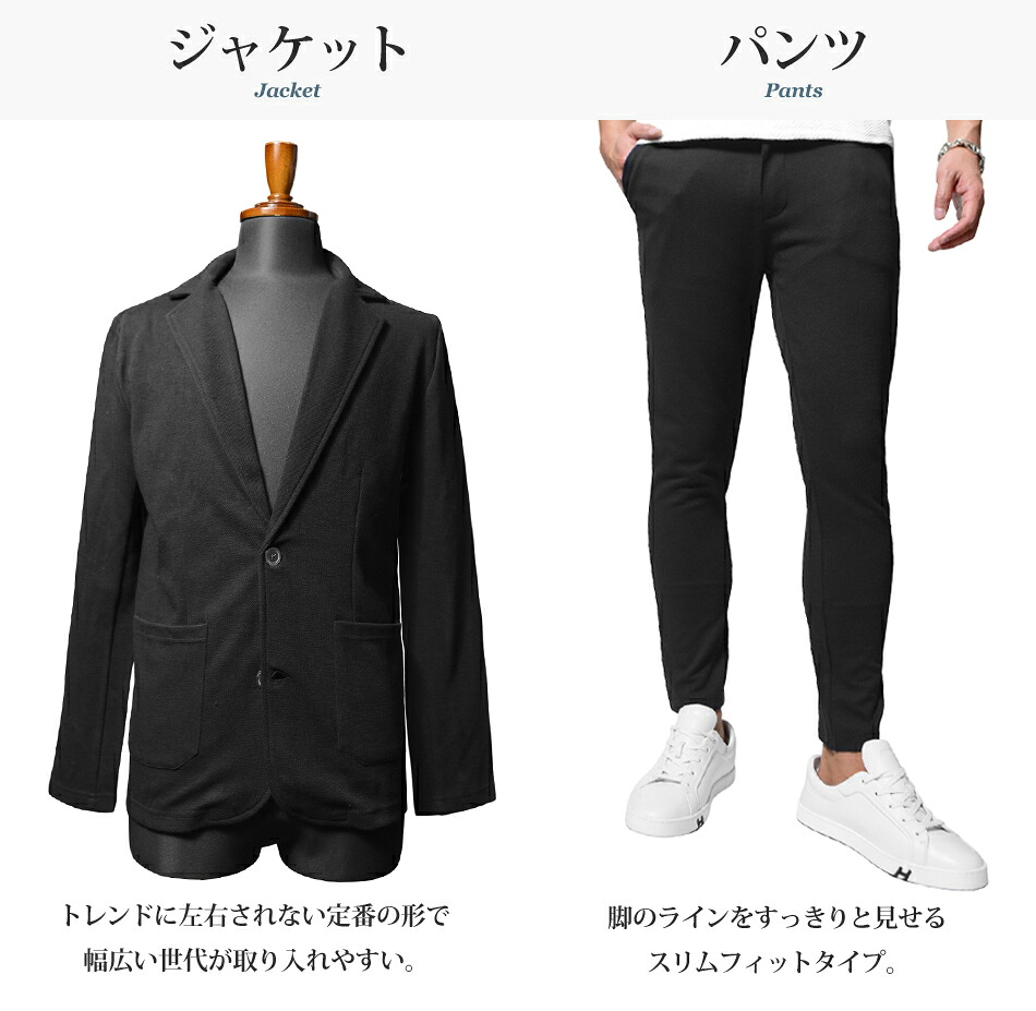 セットアップ メンズ カジュアル スーツ メンズスーツ スウェット スリム 細身 スキニー 美脚 ジャケット おしゃれ オシャレ カジュアル テーラードジャケット 伸縮 きれいめ スラックス イージーパンツ 上 下 M L LL XL ユニセックス レディース 成人式 二次会 卒業式 即納 人気 高コスパ 安い 送料無料 すぐ届く ランキング 1万円以下 男性 男 服 春 夏 秋 メンズファッション 20代 30代 40代 50代 60代 オフィスカジュアル 結婚式 パーティー 父の日 プレゼント 誕生日 記念日 贈り物 ギフト 韓国 韓国系 ファッション 人気 トレンド ランキング コスパ 服 格闘家 舞台 衣装 y2k B系 Leon イケオジ オラオラ系 不良 きれいめ デート服 お兄系 大人服 カジュアル ファッション 秋服 春服 秋物 春物 夏服