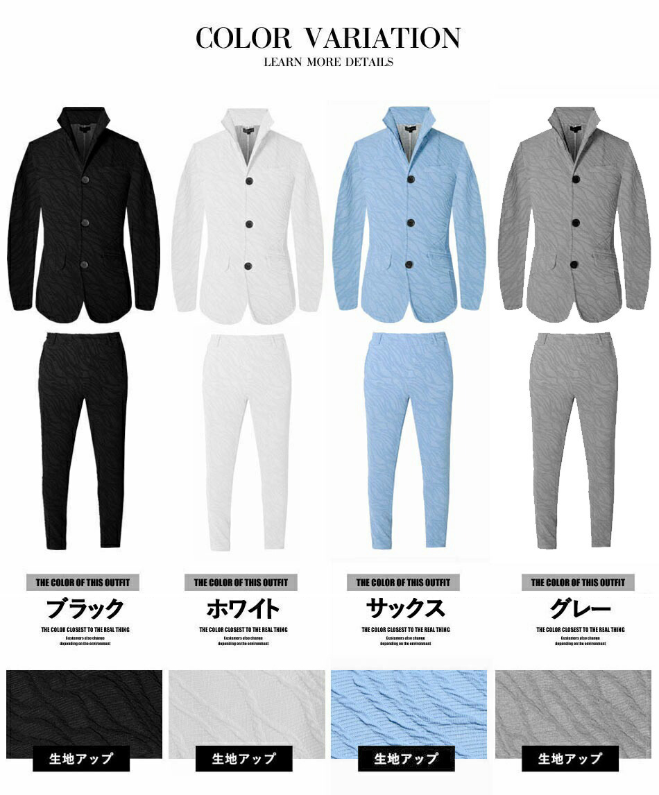 セットアップ メンズ カジュアル スーツ サマースーツ スリム 細身 スキニー 美脚 黒 グレー サックス ジャケット おしゃれ お洒落 羽織り 成人式 二次会 卒業式 即納 人気 送料無料 高コスパ 安い すぐ届く ランキング 1万円以下 オシャレ カジュアル テーラードジャケット 伸縮 きれいめ スラックス イージーパンツ 上 下