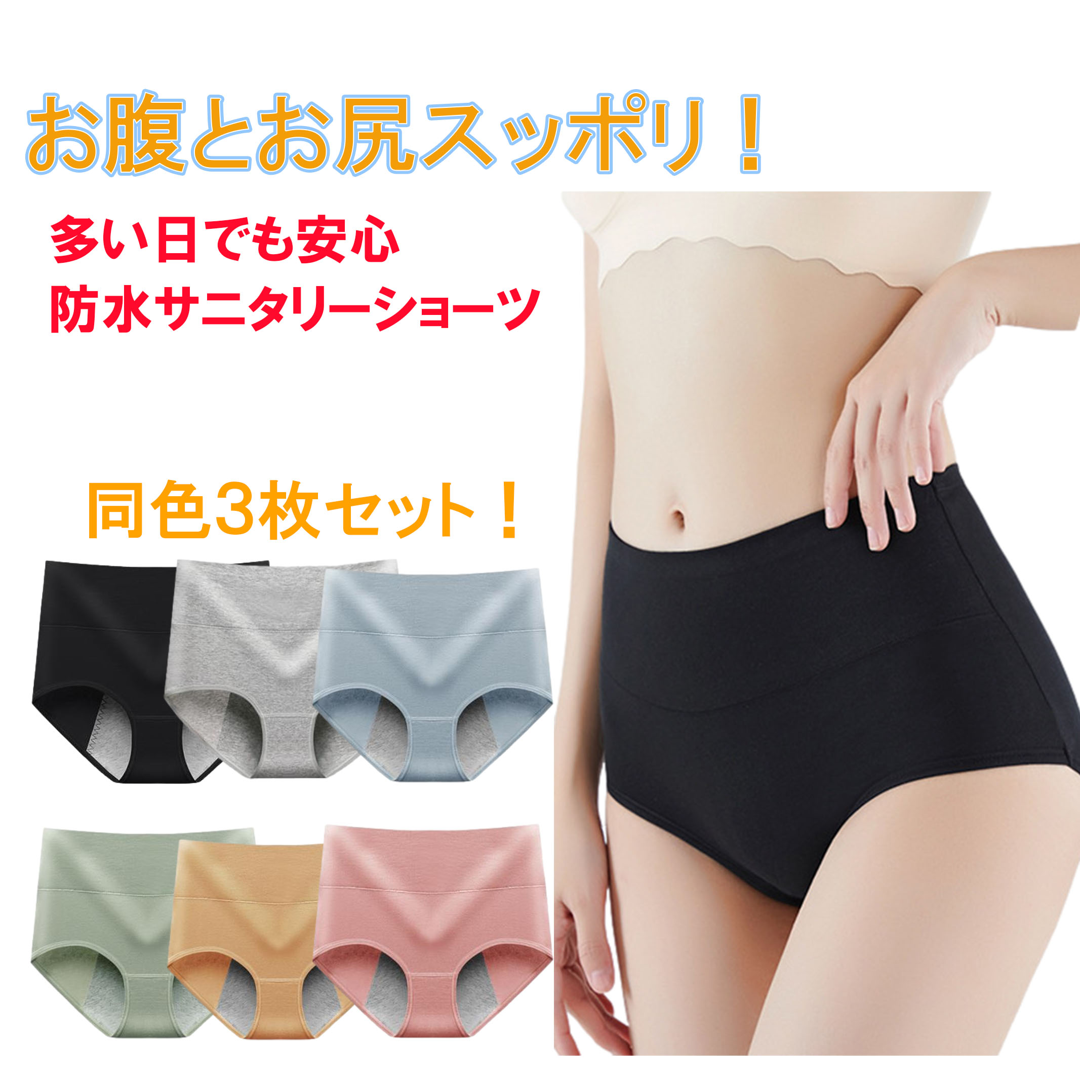 サニタリーショーツ 3枚セット 防水布付きショーツ ハイウエスト 生理用ショーツ 生理用パンツ サニタリーパンツ 大きいサイズ ジュニア パンツ 夜用 防水パンツ