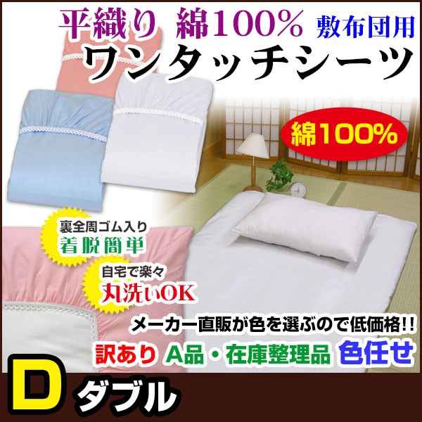 ワンタッチシーツ 平織り ダブル 140×210×20cm 綿100% A品 在庫整理 色任せ