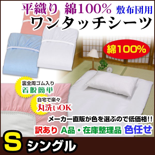 ワンタッチシーツ 平織り シングル 105×210×20cm 綿100% A品 在庫整理 色任せ