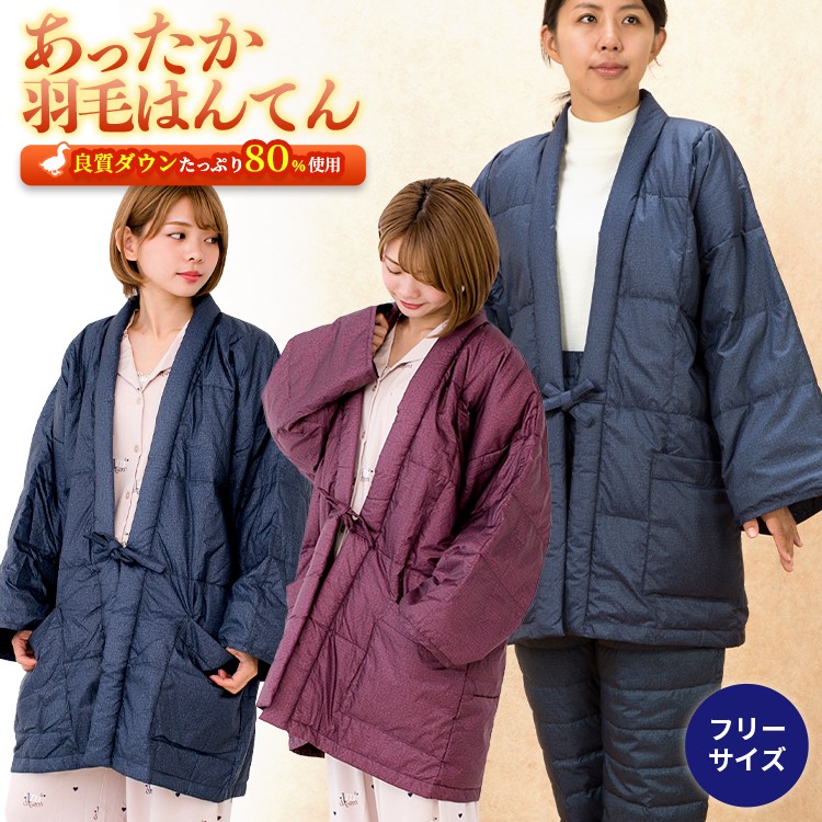 羽毛 半纏 はんてん 袢纏 ダウン あったか フリーサイズ エンジ 紺 カスリ 送料無料メーカー直販 ギフト 父の日 母の日 メンズ レディース 寝巻 ちゃんちゃんこ
