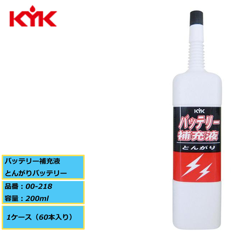 電池工業会規格(SO404)適合 KYK 古河薬品 バッテリー補充液 とんがりバッテリー 00-218 200ml 1ケース(60本入り)
