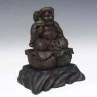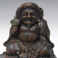 高級銘木である柘植から彫り上げられ、古色に仕上げた三面大黒天坐像です。