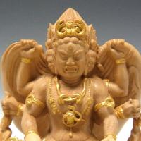高級銘木である柘植から彫り上げられた三面大黒天坐像(マハーカーラ)です。