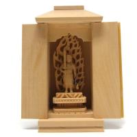 仏像は高級銘木でもある柘植製。厨子と仏様は固定されていないので厨子の外に出すことが可能。
