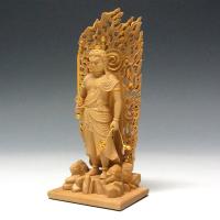 木彫り 仏像 金彩不動明王 立像 高さ11.5cm 柘植製