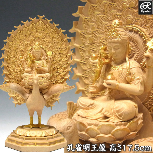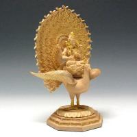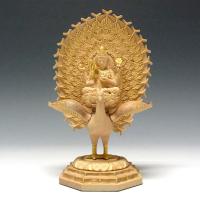 木彫り 仏像 金彩孔雀明王 坐像 高さ17.5cm 柘植製