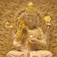 高級銘木である柘植から彫り上げられた孔雀明王坐像です。