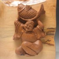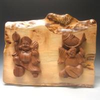 欅 恵比寿大黒 栃飾り木彫 木彫り 壁掛け