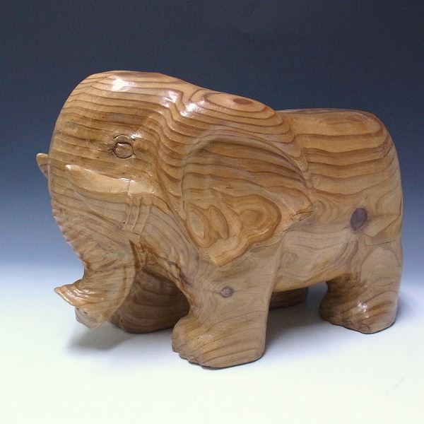 杉 木彫りの象(スツール) 置物