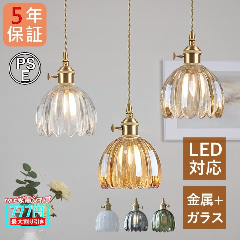 AAAZM ペンダントライト ガラス 北欧 おしゃれ LED電球 ステンドグラス 菊 花型 和風和室 スイッチ付 天井照明器具 ダイニング キッチン リビング 吊下げランプ