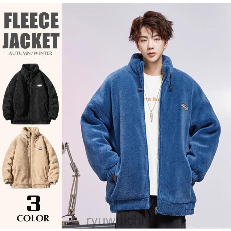 フリースジャケット メンズ ボアジャケット スタンドカラー ボア アウター コート 大きいサイズ カジュアル 暖かい 軽量 男女兼用