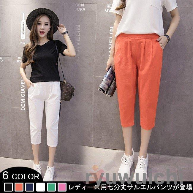 七分丈パンツ レディース サルエルパンツ ウエストゴム 七分丈 体型カバー クロップドパンツ 女性用 夏物 ボトムス 着やせ 着まわし