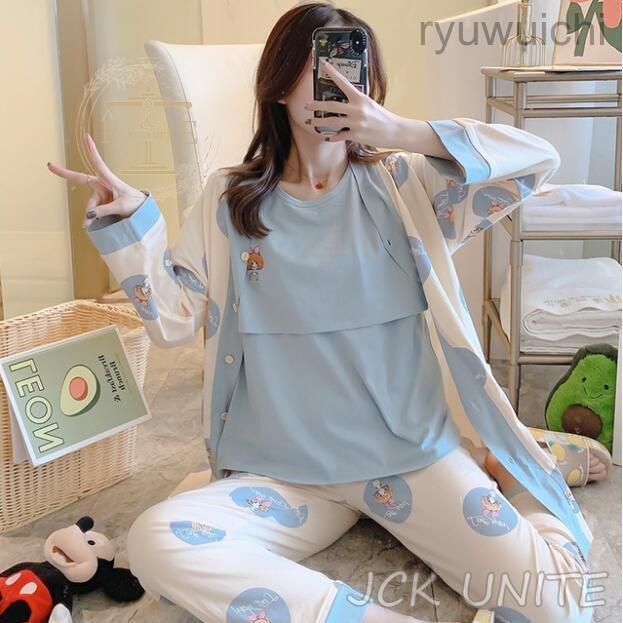 授乳服 パジャマ レディース マタニティ 長袖 春 夏 秋 綿 授乳パジャマ 授乳口付 寝巻き ルームウエア 部屋着 3点セット ママ 大きいサイズ 産前産後 妊娠