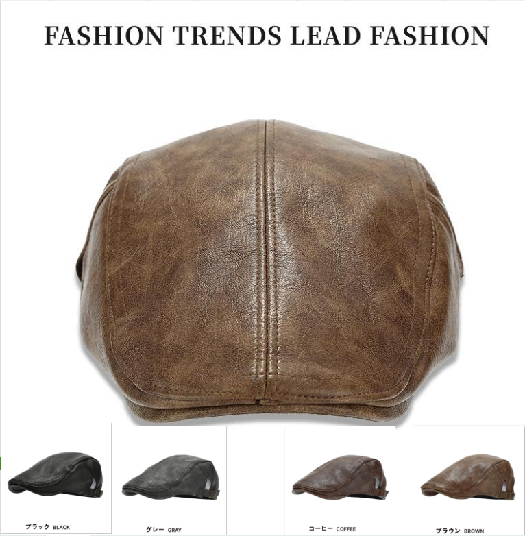 PU革 ハンチング メンズ 帽子 レディース レザー キャップ 秋 冬 ぼうし 耐寒 防風 保温 ゴルフ 紳士用 軽量 父の日 カジュアル