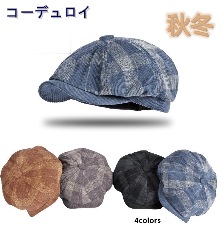 キャスケット メンズ ハンチング 帽子 レディース コーデュロイ キャップ ぼうし 秋 冬 ゴルフ帽 軽量 紳士用 カジュアル ギフト