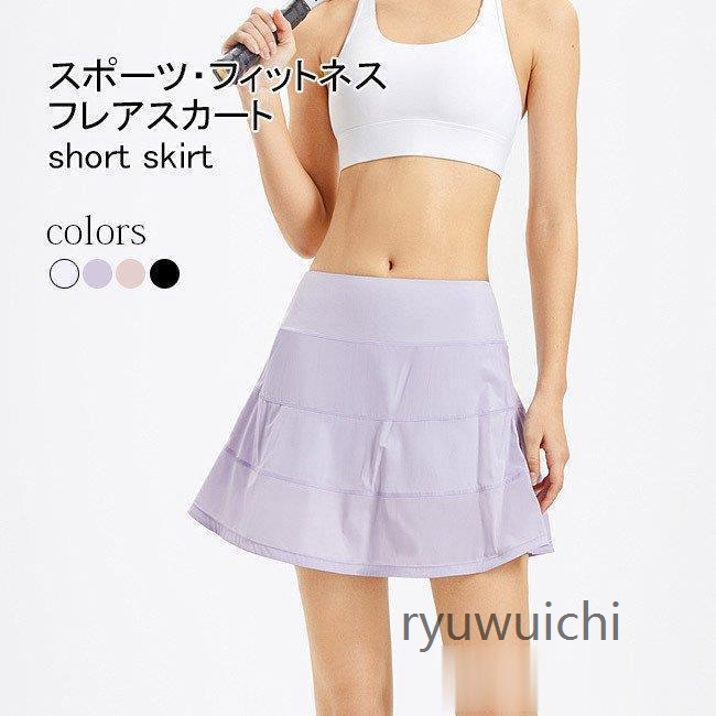 テニススカート レディース ランスカ スカート ショート スポーツ 吸汗速乾 ストレッチ ランニング ダンス ヨガ フィットネス テニス フレアスカート ミニスカ インナーパンツ付き スポーツスカート