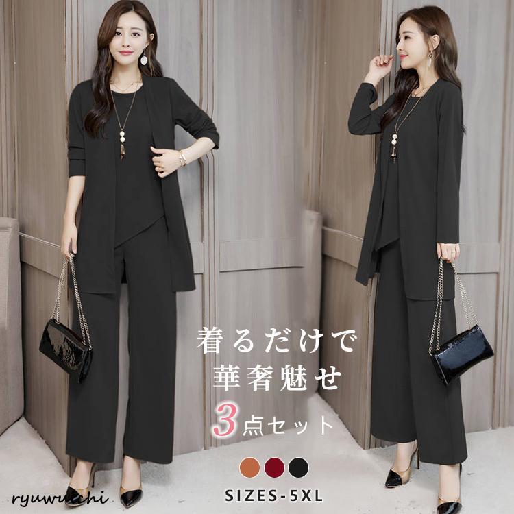 セットアップ パンツスーツ レディース 3点セット パンツドレス フォーマル ロングパンツ 入学式 ママスーツ 長袖 大きいサイズ 結婚式 入学式 スーツ 卒業式