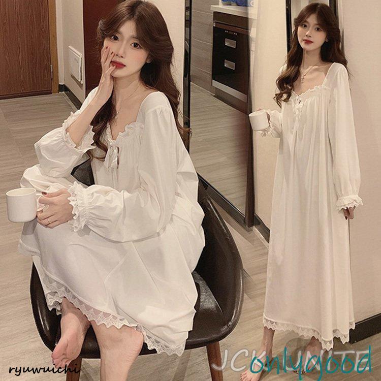 【商品説明】:ネグリジェ 春夏秋 姫 ネグリジェ 白ワンピース レースネグリジェ ロング丈 長袖 ネグリジェ パジャマ レディース 大人可愛い部屋着 オシャレ新作