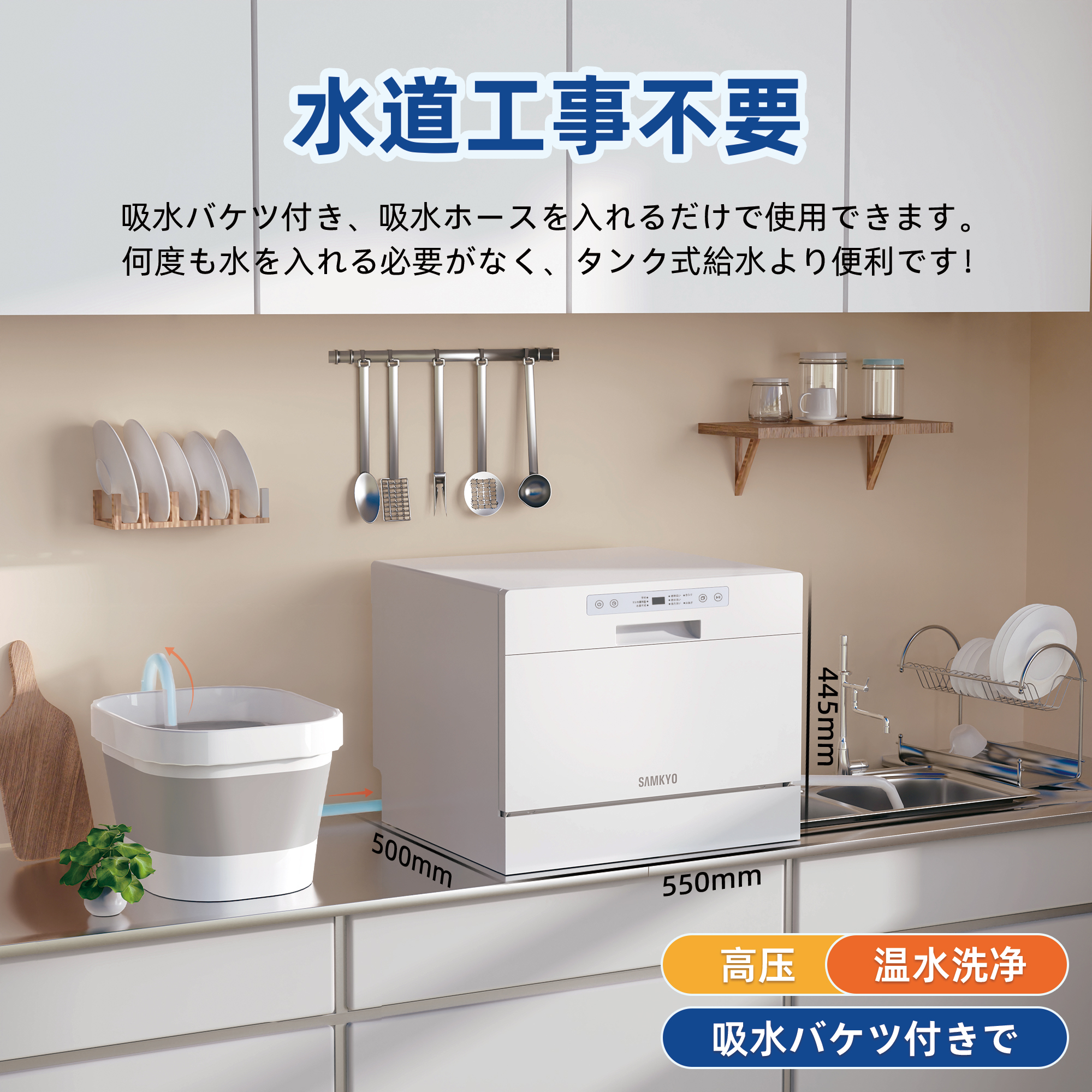 【工事不要★どのお家にも置ける】・ホースを繋ぐだけでOK!届いたその日からすぐに使えます。