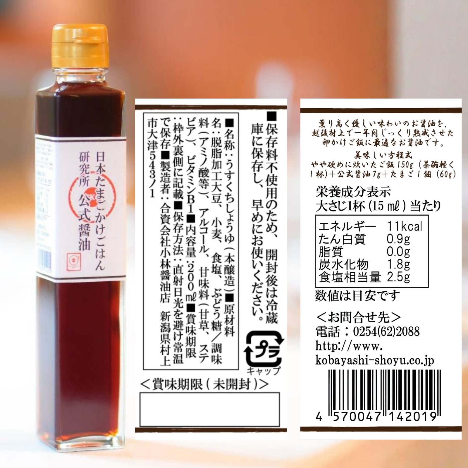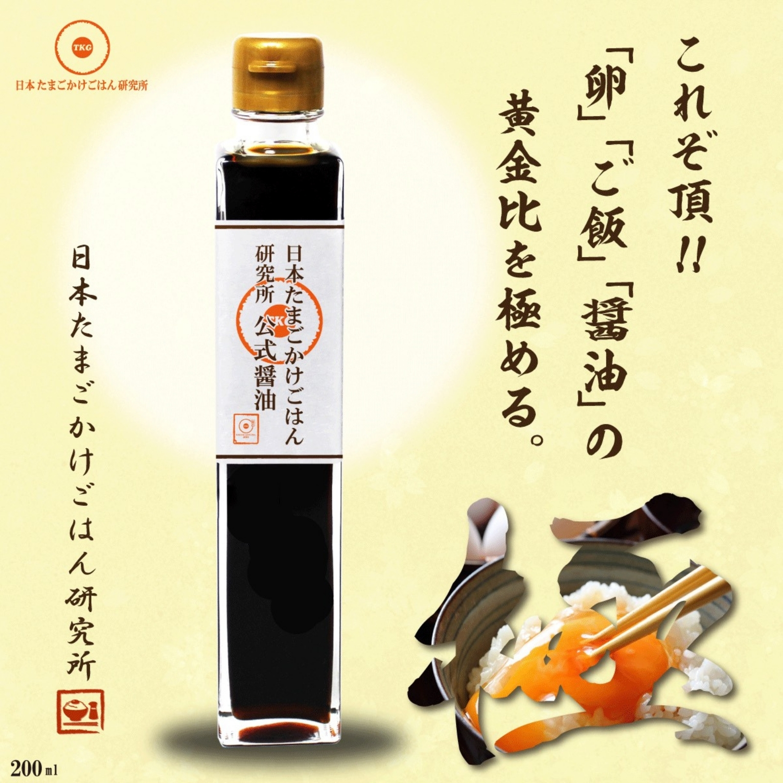 その中で一番美味しいと感じた醤油の醸造元と共同開発しよりたまごかけごはんに合う醤油に仕上げたのが『日本たまごかけごはん研究所公式醤油』です。