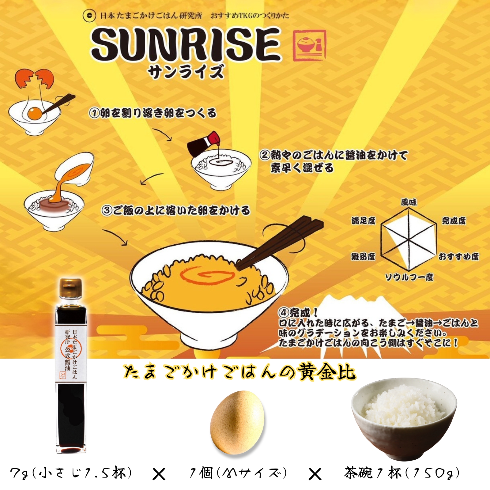 日本たまごかけごはん研究所ではこの食べ方を「サンライズ」と呼んでいます!