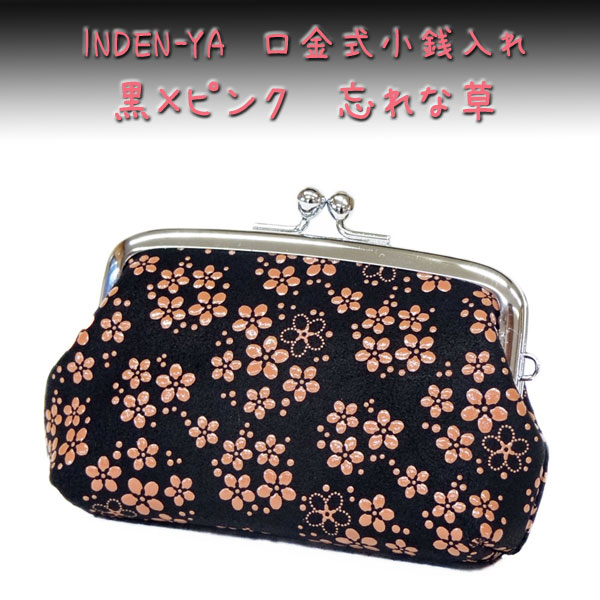印傳屋 印伝 がま口財布 小銭入れ 1103 黒地鹿革 ピンク漆 忘れな草柄 爆買