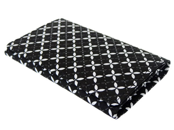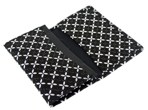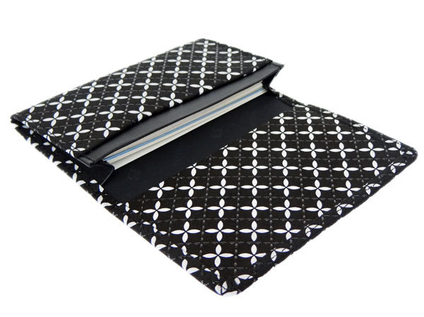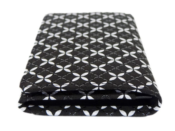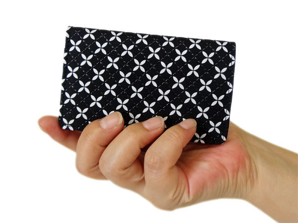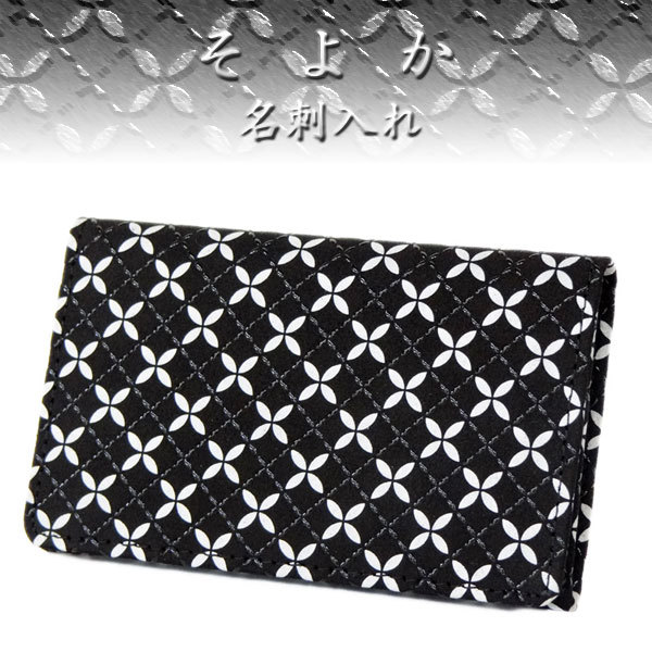 印傳屋 印伝 そよか名刺入れ 8808 黒地鹿革 白更紗 黒漆 七宝繋ぎ柄 爆買