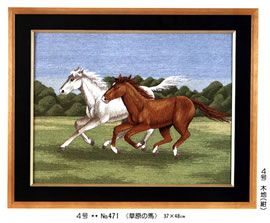 キット内容:布(番号プリント付)、文化ヤーン(番号付)、実物カラー写真(番号図付)