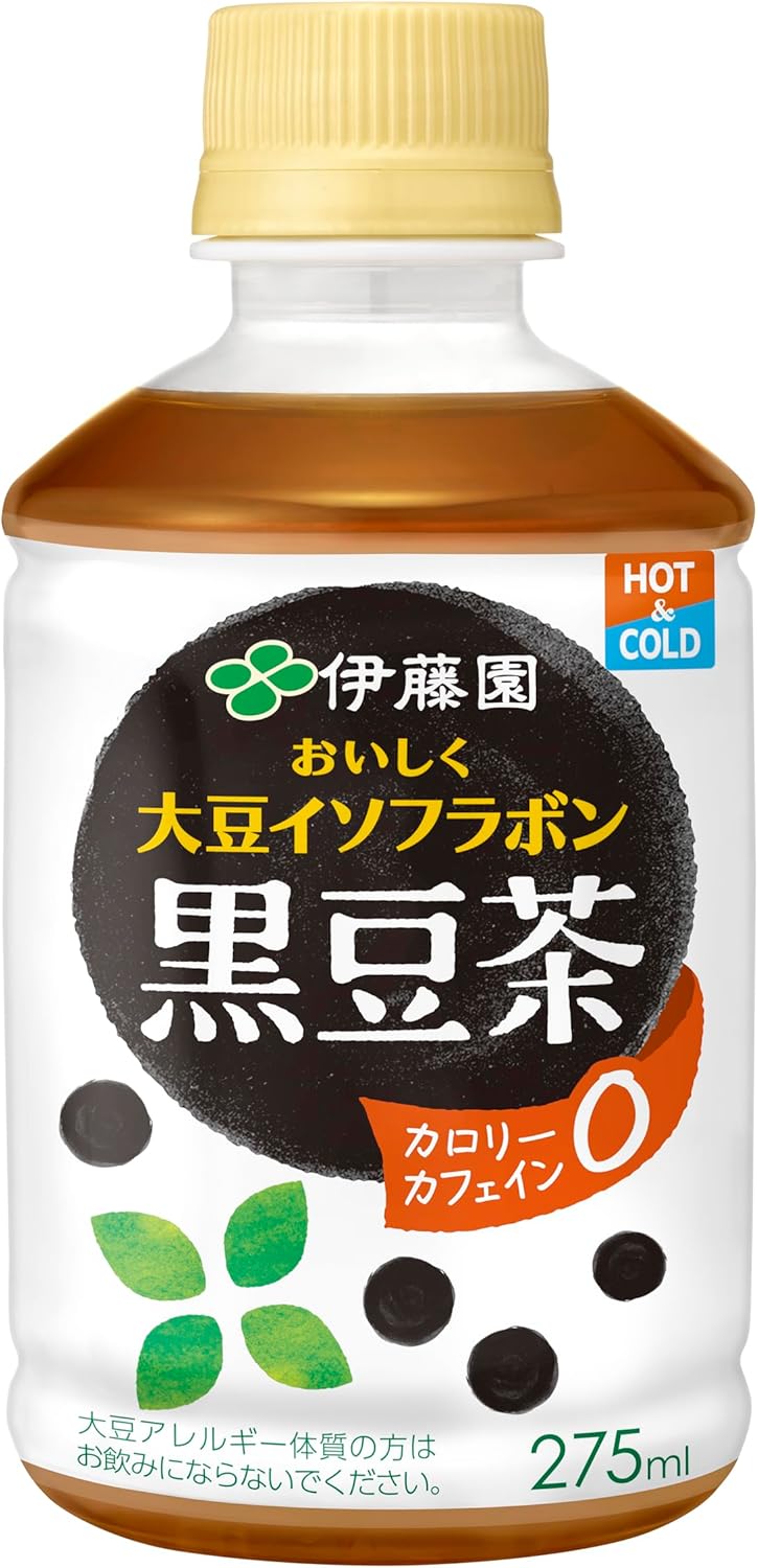 大豆イソフラボンを14〜27mg(1本=275ml当たり)含んだカロリー・カフェインゼロの黒豆茶飲料です。