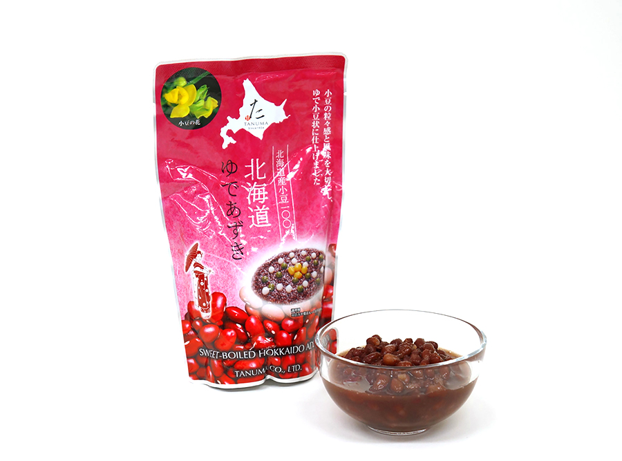 北海道産の小豆に粒々感を残し、ゆであずき状に仕上ました。
