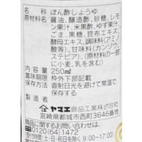 原材料:醤油(国内製造)、醸造酢、砂糖、レモン果汁、米黒酢、ゆず果汁、ごま、黒糖、昆布エキス、酵母エキス、かつお節エキス/調味料(アミノ酸等)、酒精、甘味料(カンゾウ、ステビア)、(一部に小麦・大豆・ごまを含む)