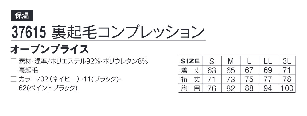 アタックベース 作業服 防寒着 メンズ 作業着 防寒 インナー 冬 暖かい 長袖 アンダーウェア 肌着 下着 長袖シャツ 裏起毛 コンプレッション 37615