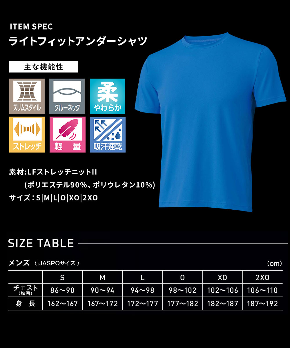 着心地にとことんこだわり開発されたLFストレッチニットIIは吸汗速乾性にも優れ、最高の着用感を感じる事ができます。