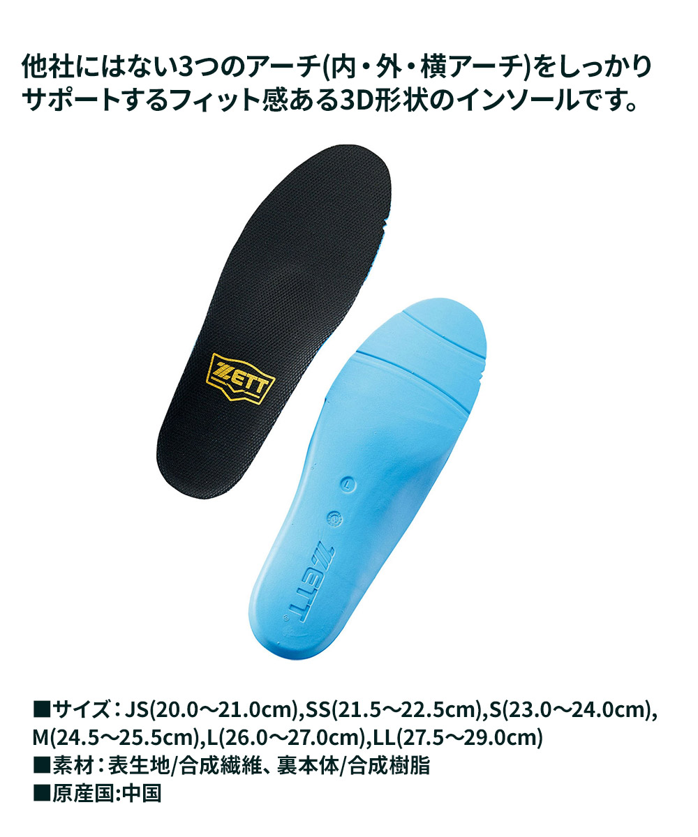 ゼット 野球 スパイク インソール レギュラーカップ 中敷き 黒 ブラック メンズ レディース ベースボール 練習 スポーツ ZETT BX623