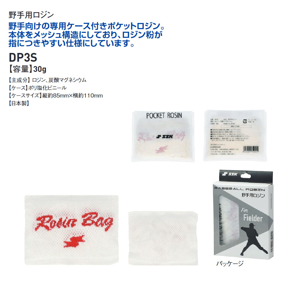 SSK 野球 滑り止め ロジン 粉末 松ヤニ 粉 野手用 ロージン ロジンバッグ 軟式 硬式 ソフトボール 兼用 手汗対策 守備 日本製 メンテナンス エスエスケイ dp3s