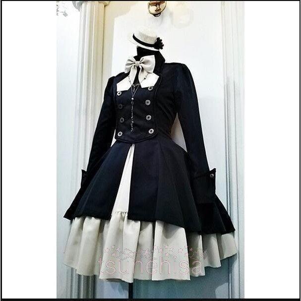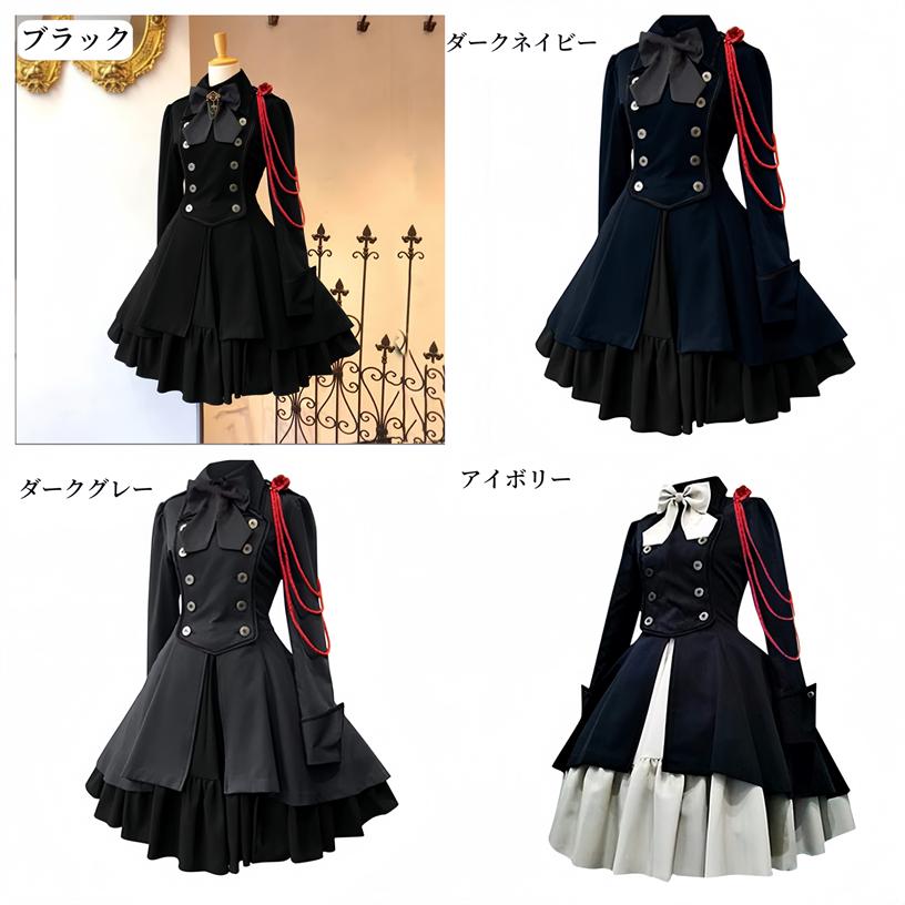 膝丈ワンピース 軍服風 ロリータ ワンピース ゴスロリ ドレス 長袖 コスプレ 衣装 制服 スカート4色