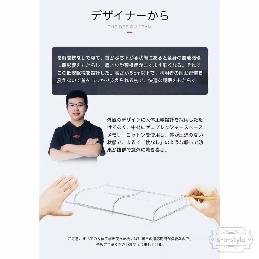 ●高さが5cm以下で、利用者の睡眠習慣を変えないで首をしっかり支えられる枕で、快適な睡眠をもたらす 外観のデザインに人体工学設計を採用しただけでなく、中材にゼロプレッシャースペースメモリーコットンを使用し、体が圧迫のない状態で、「枕なし」のような感じで効果が抜群で意外に驚き喜ぶ。
