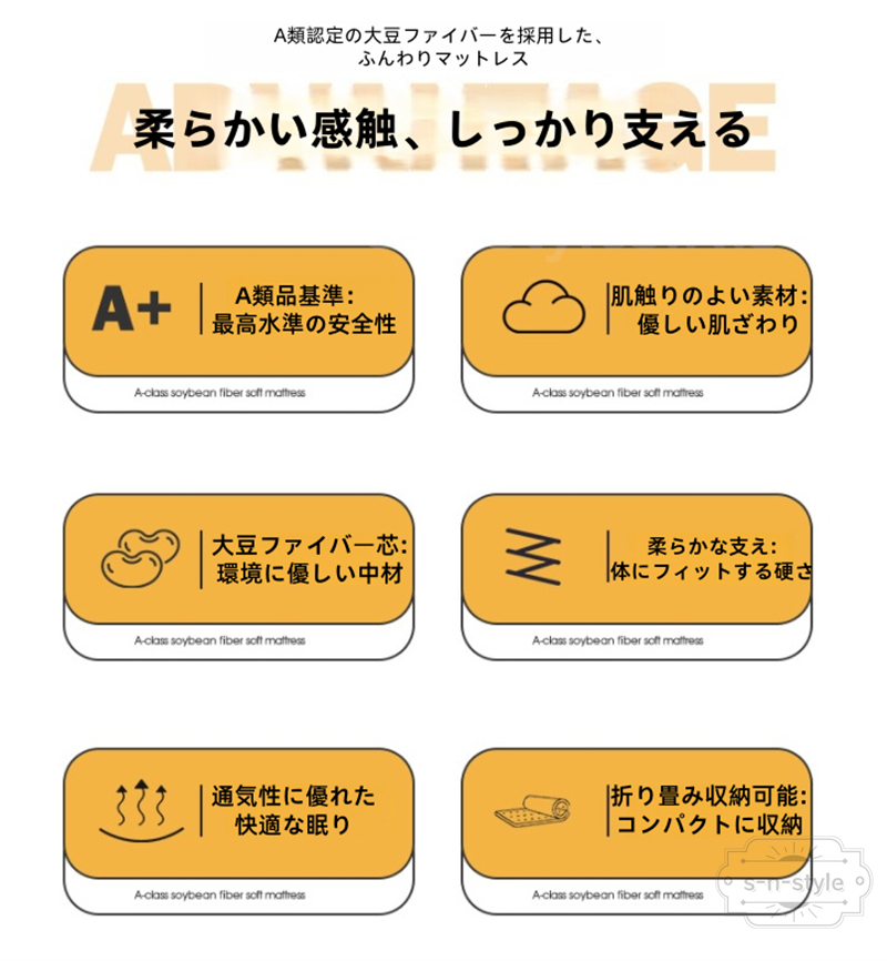 ※敷布団は柔らかい素材で作られてますので、圧縮梱包からすぐに復元した状態、また測り方によっては、多少サイズに誤差が生じる場合がございます。予めご了承下さい